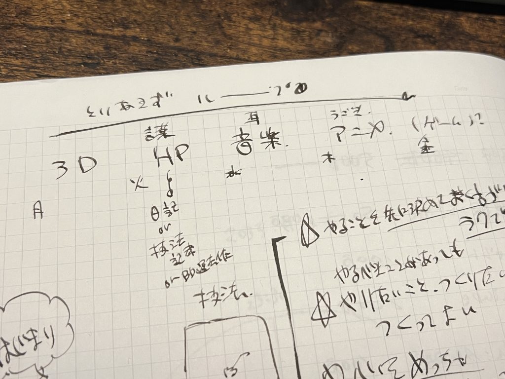 完全にこれの通りにする…とまでは行かなくとも、もともとあれもこれもとやりたいことが多くて混乱することが多かったまちゅむら。そろそろこうした工夫をしてみたらよいんでないかという予感もあるところである。